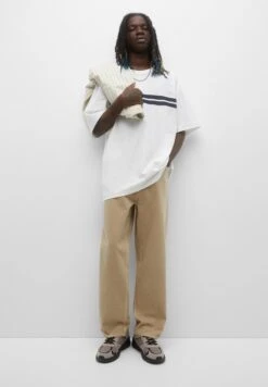 PULL & BEAR Striped Short SleeveT-Shirt Con StampaSand Uomo T-shirt E Polo PUC22O1KJ-B11