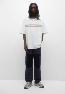 PULL & BEAR Striped PanelT-Shirt Con StampaDark Blue Uomo T-shirt E Polo PUC22O1LB-K11