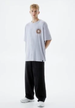 PULL & BEAR Stwd Short Sleeve Cut-Out T-Shirt BasicGrey Uomo T-shirt E Polo PUC22O1OB-C11