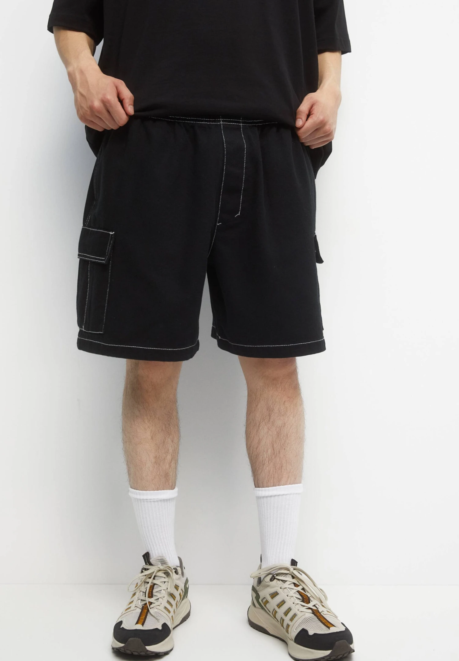 PULL & BEAR Bermuda With Seam DetailShortsBlack Uomo Bermuda PUC22F0CW-Q11
