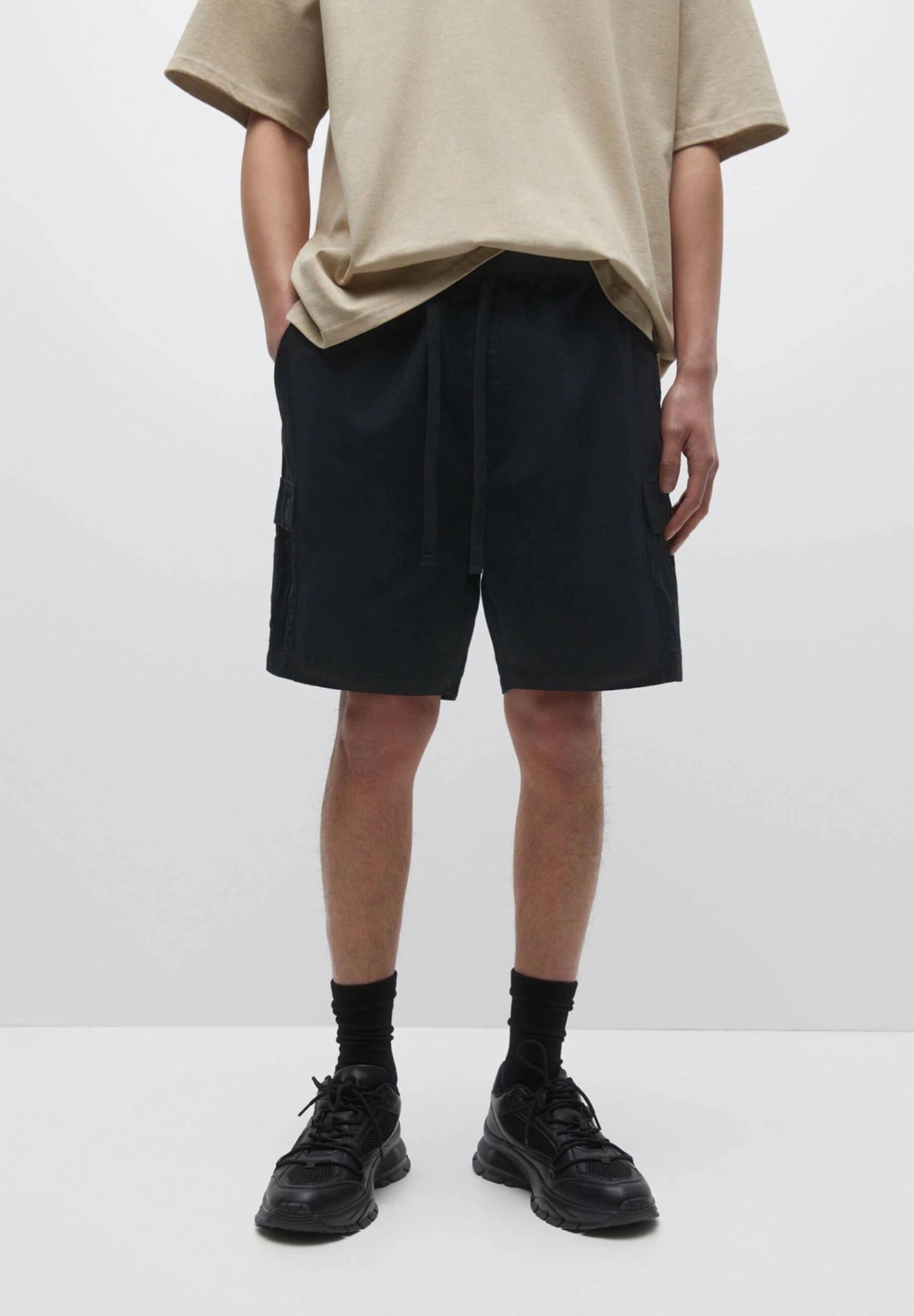 PULL & BEAR BermudaWith An Elastic WaistbandShortsBlack Uomo Bermuda PUC22F0BU-Q11