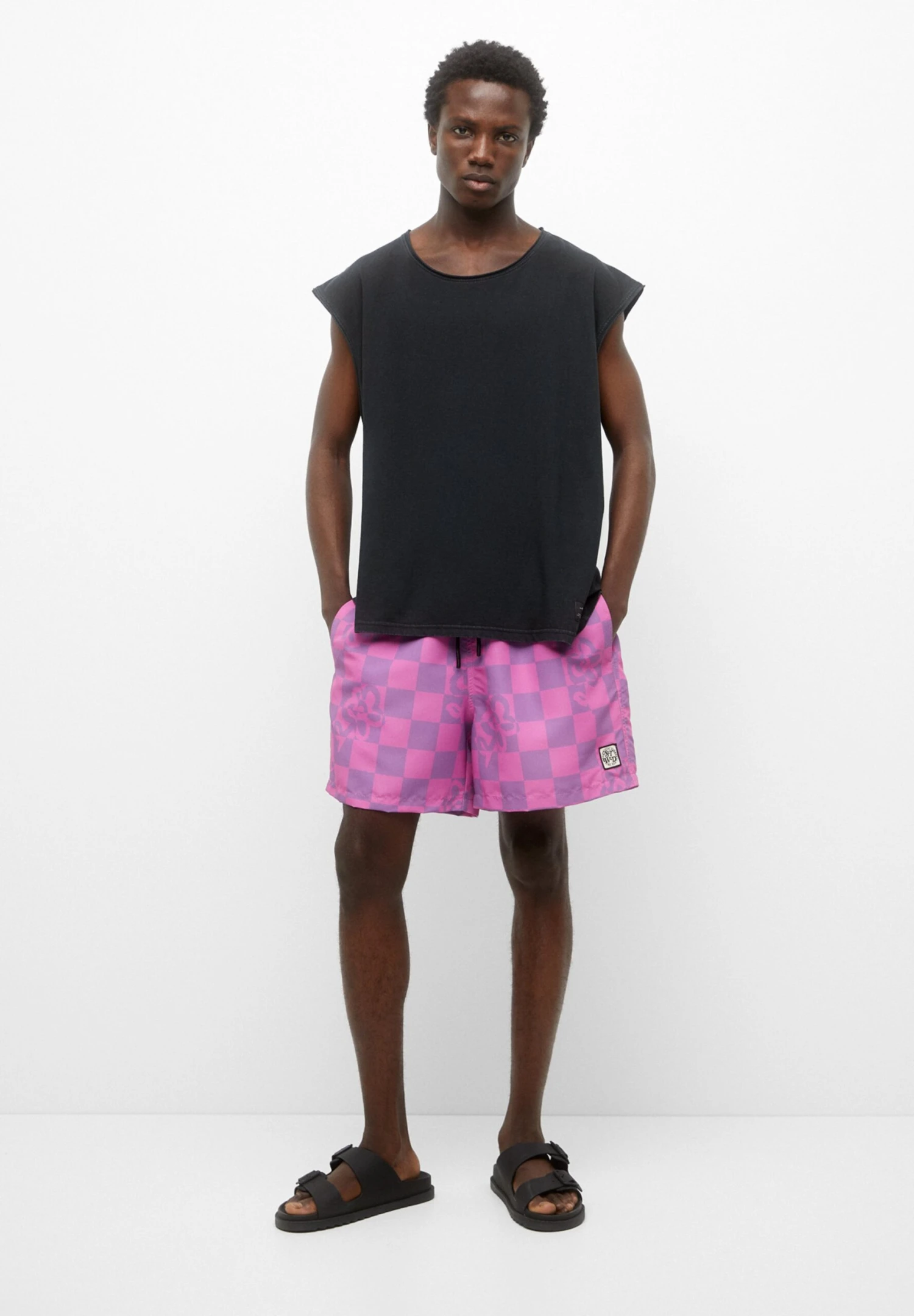 PULL & BEAR Chequered PrintShorts Da MarePink Uomo Moda Mare PUC82H03P-J11