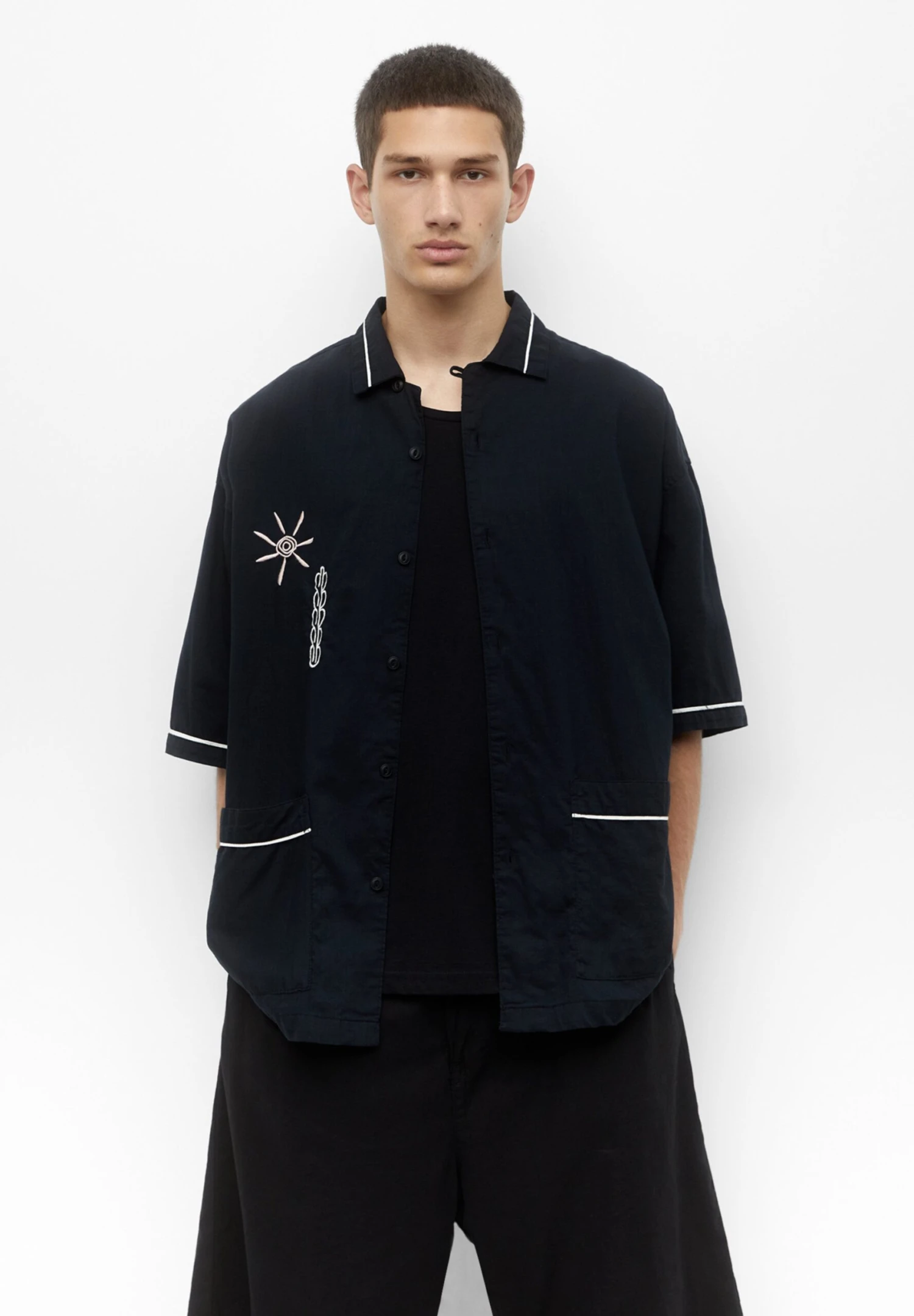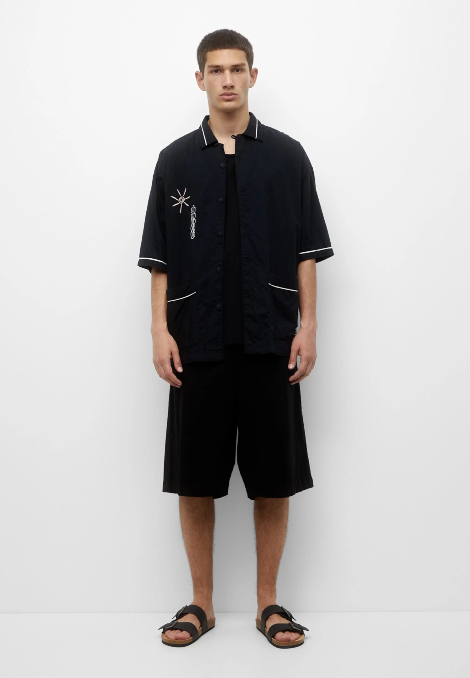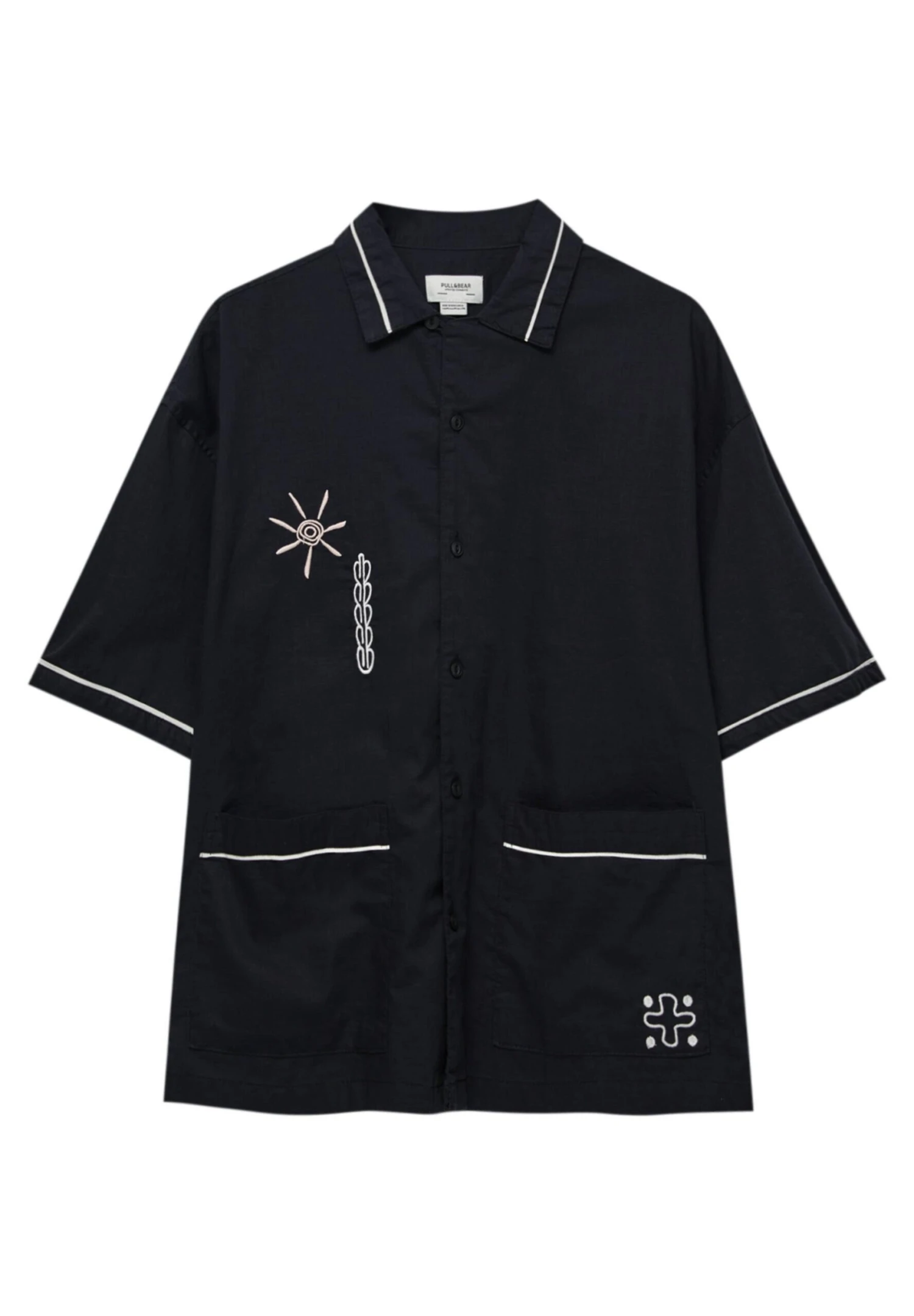 PULL & BEAR Embroidered Short SleeveCamiciaBlack Uomo Camicie PUC82N000-Q11