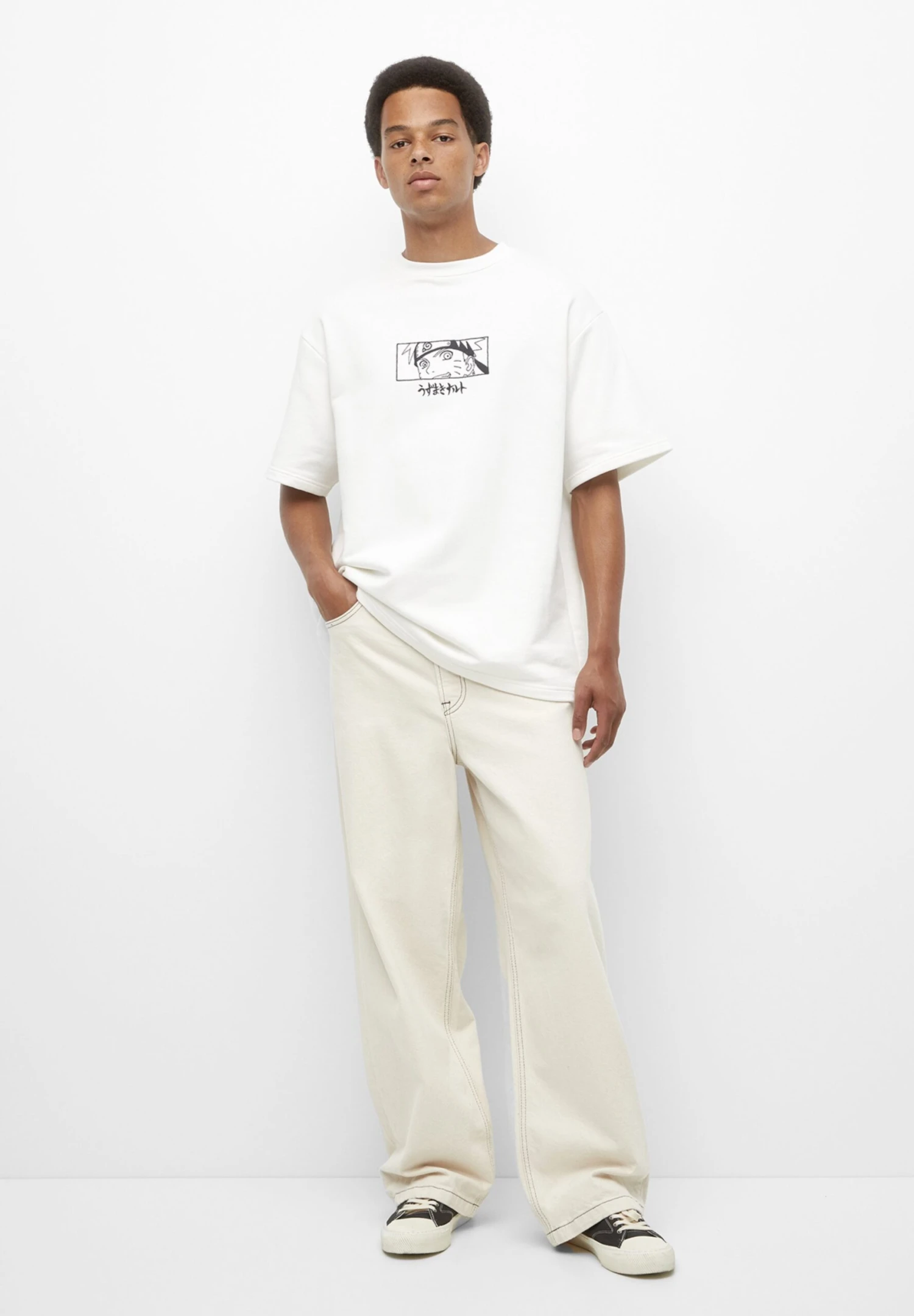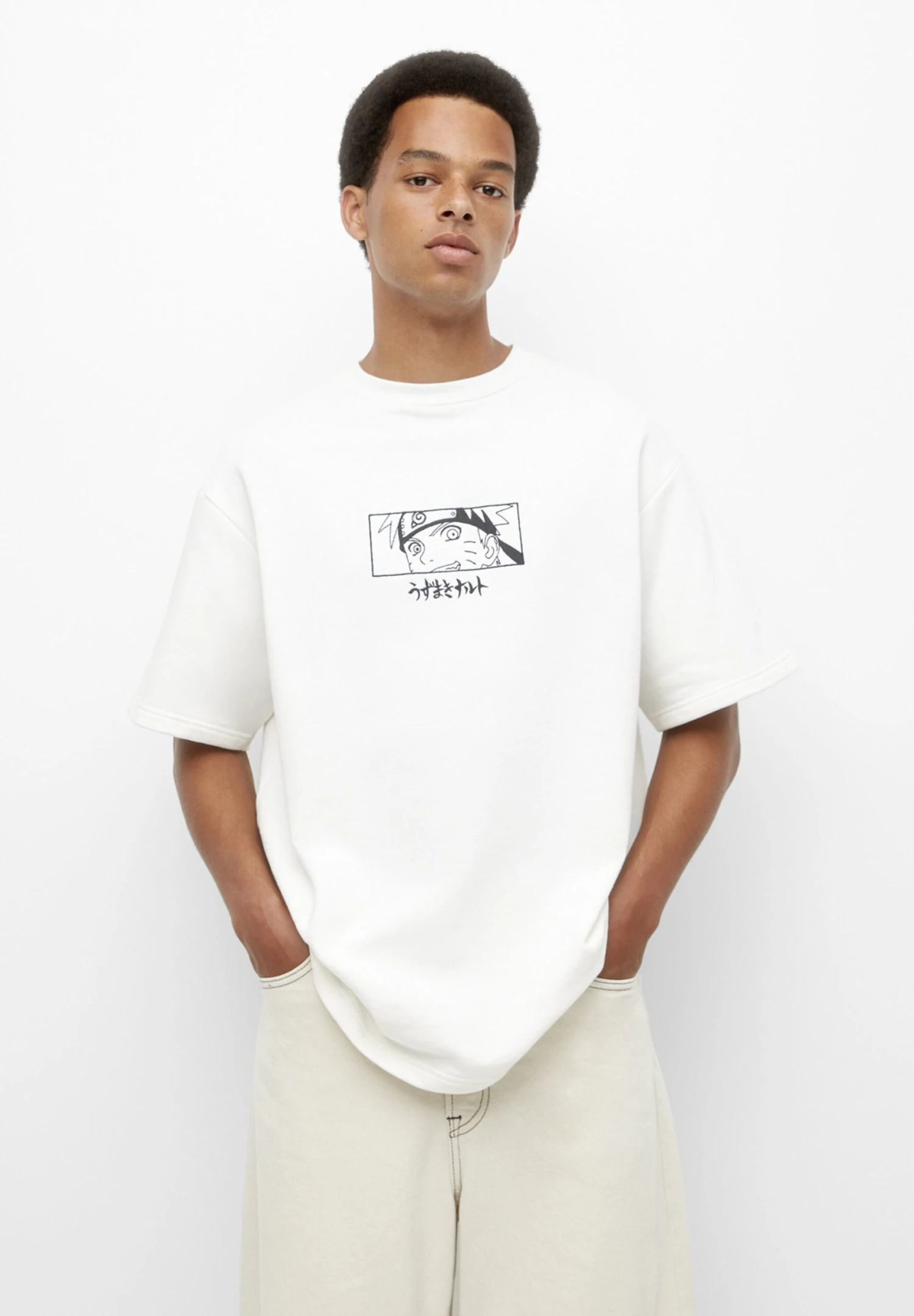 PULL & BEAR Naruteo EmbroideredT-Shirt Con StampaWhite Uomo T-shirt E Polo PUC22O1OU-A11