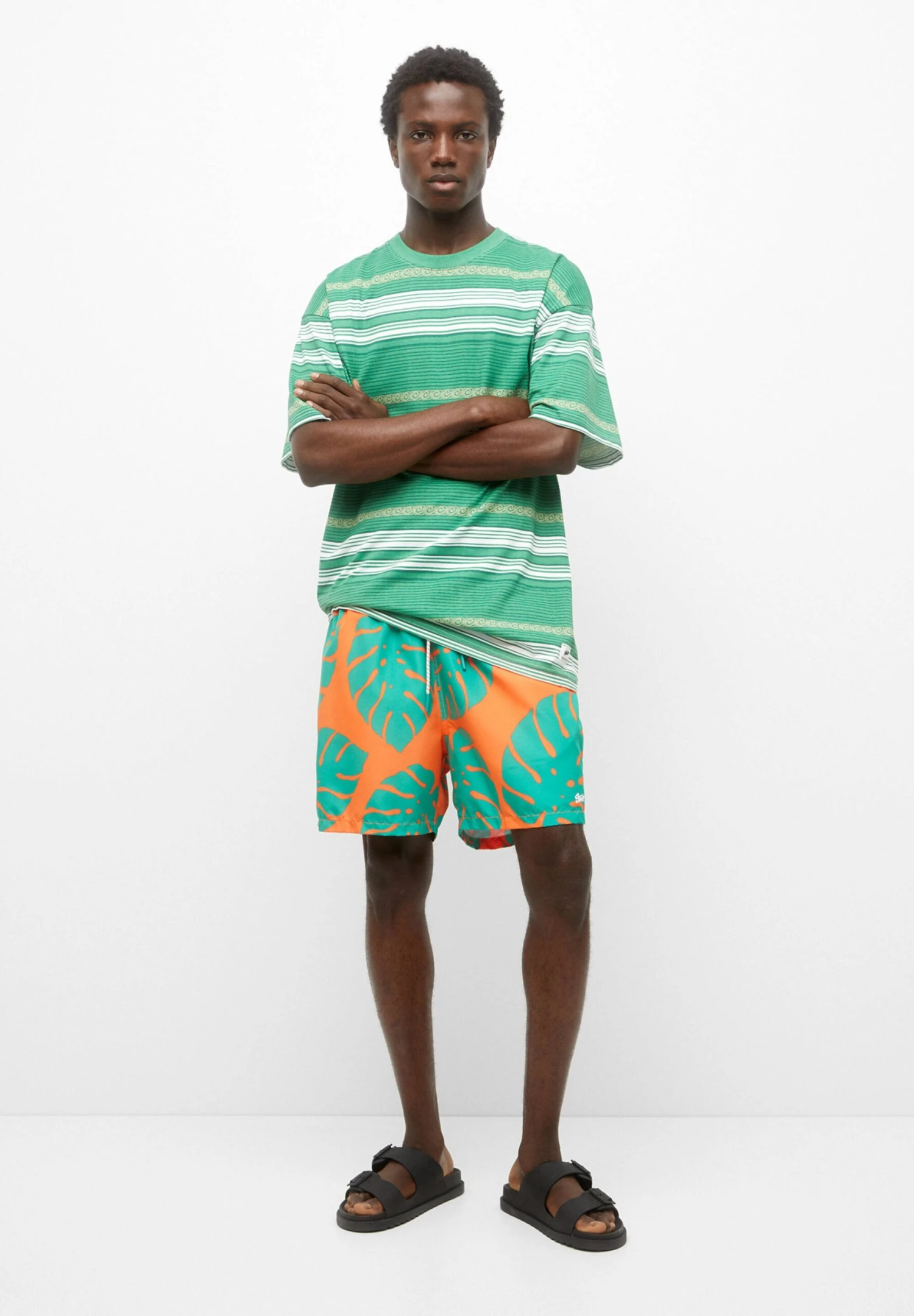 PULL & BEAR Palm Tree PrintCostume Da BagnoOrange Uomo Moda Mare PUC82H03D-H11