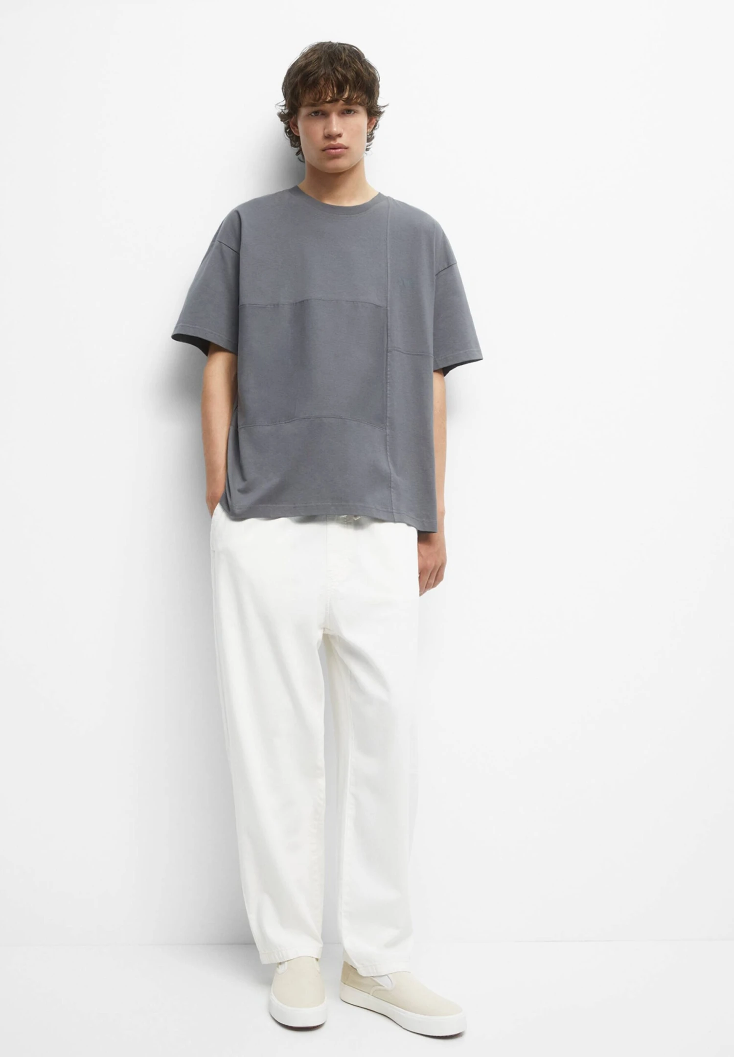 PULL & BEAR Stwd Short Sleeve Cut-Out T-Shirt BasicGrey Uomo T-shirt E Polo PUC22O1OB-C11