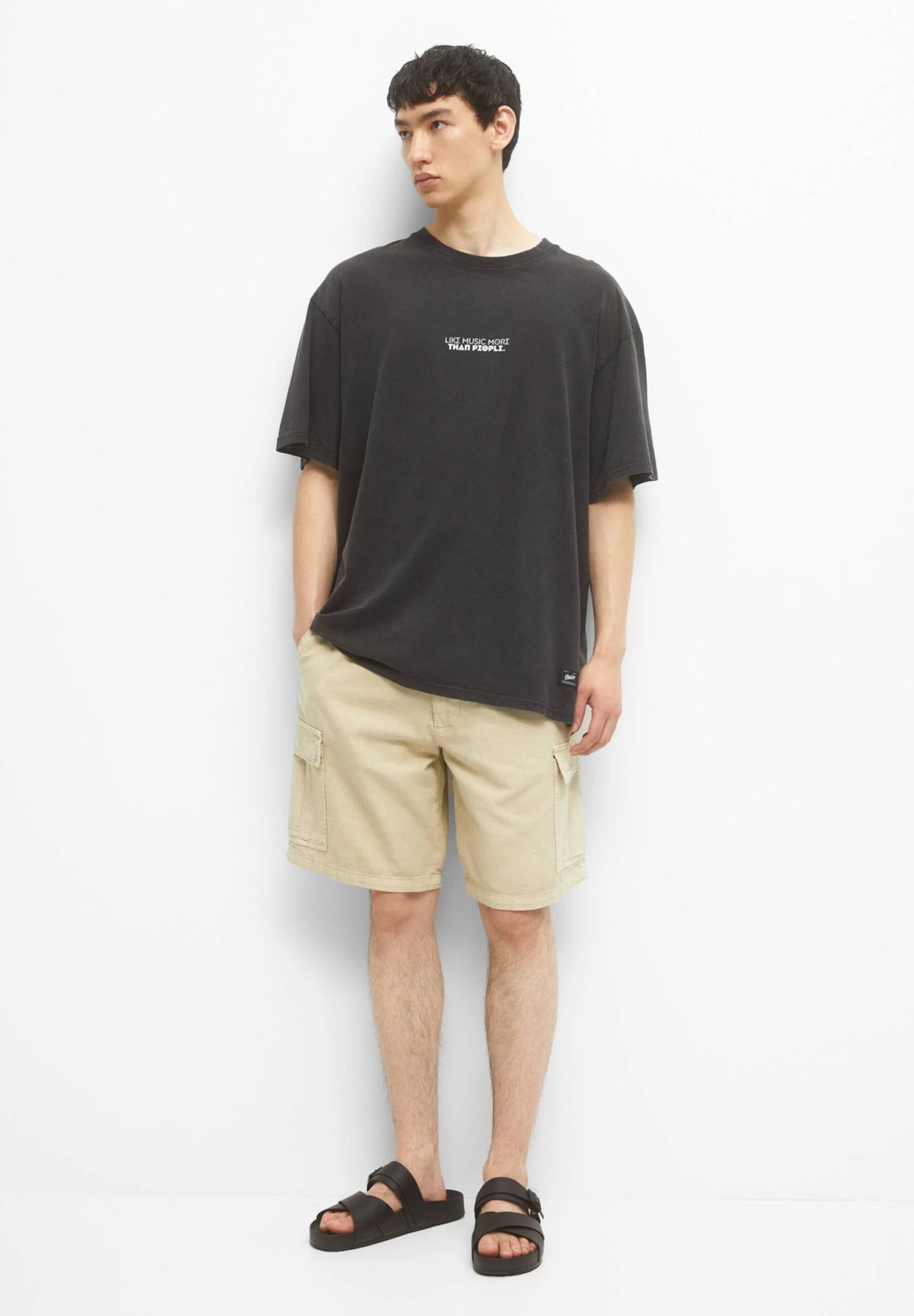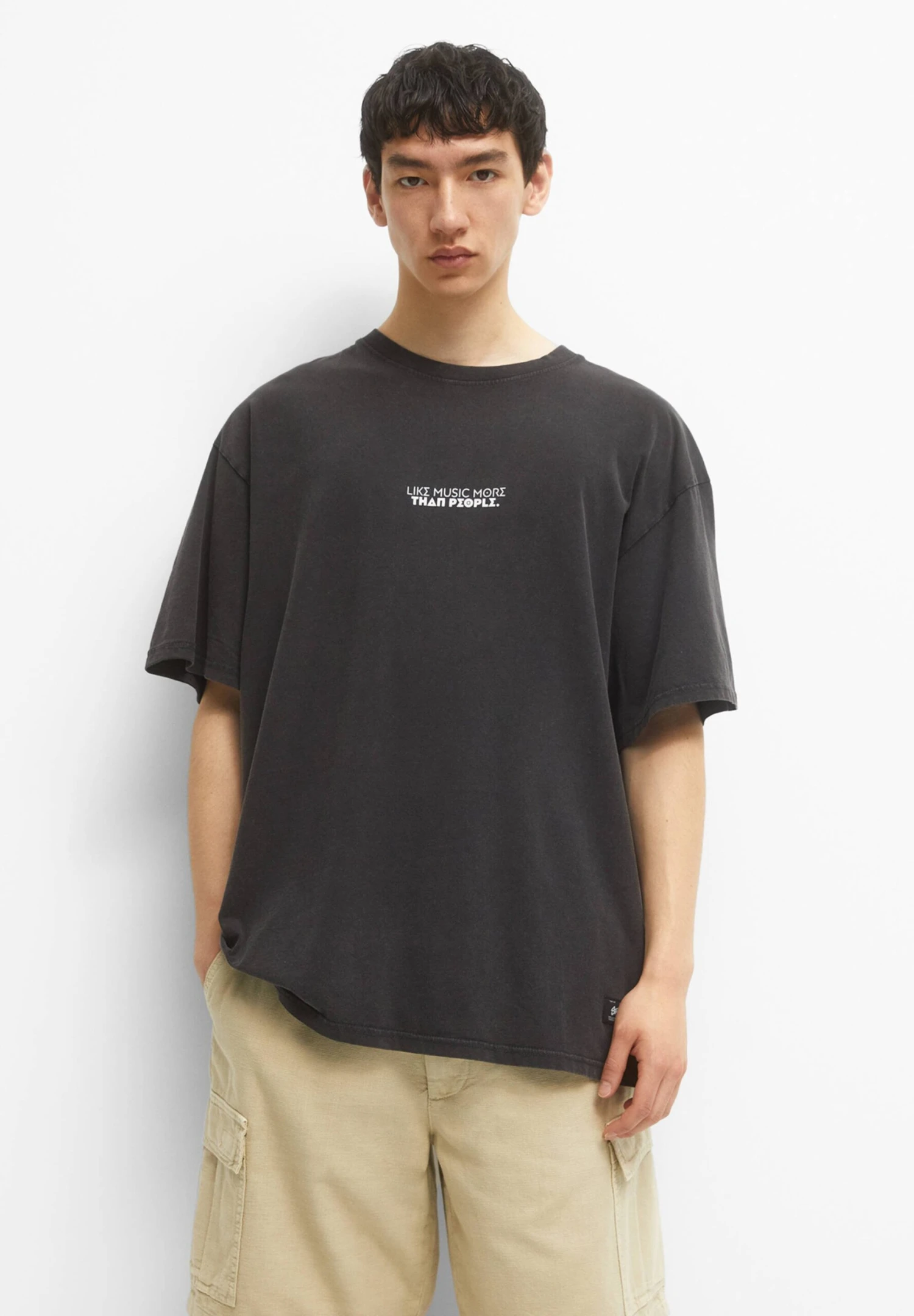 PULL & BEAR With Short Sleeves And Slogan PrintT-Shirt Con StampaDark Grey Uomo T-shirt E Polo PUC22O1NQ-C11