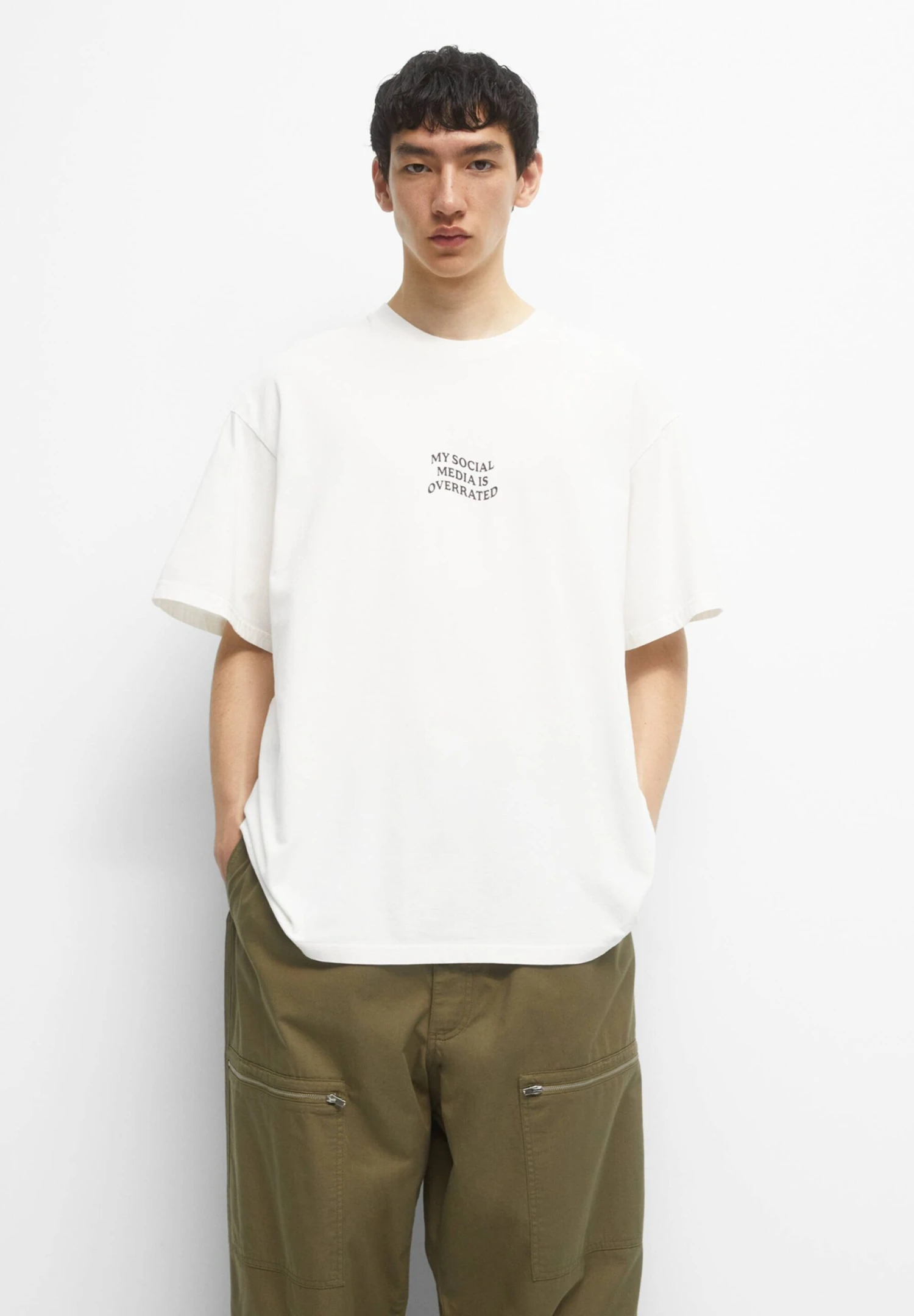 PULL & BEAR With Short Sleeves And Slogan PrintT-Shirt Con StampaWhite Uomo T-shirt E Polo PUC22O1NQ-A11